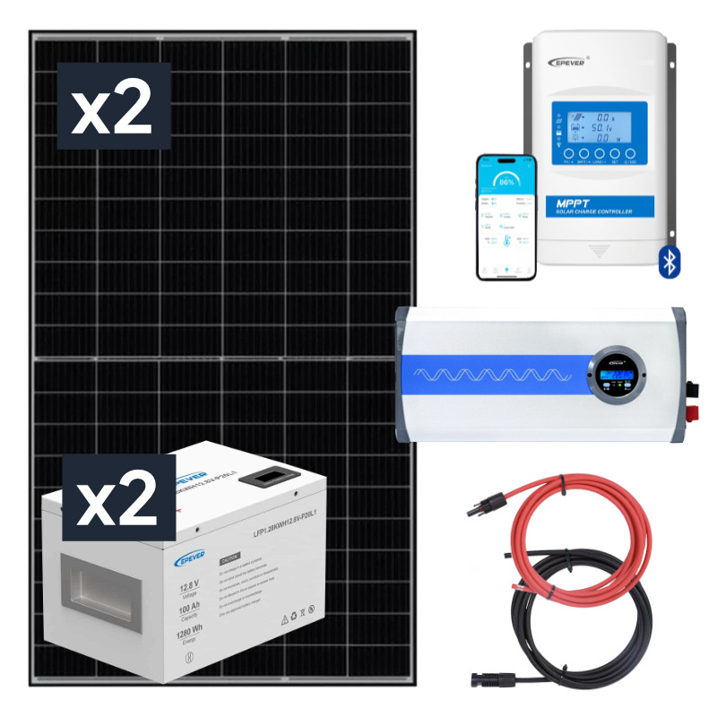 ELEKTROWNIA SŁONECZNA 870WP Z AKUMULATOREM – ZASILANIE 230V MOC 2000W + MPPT