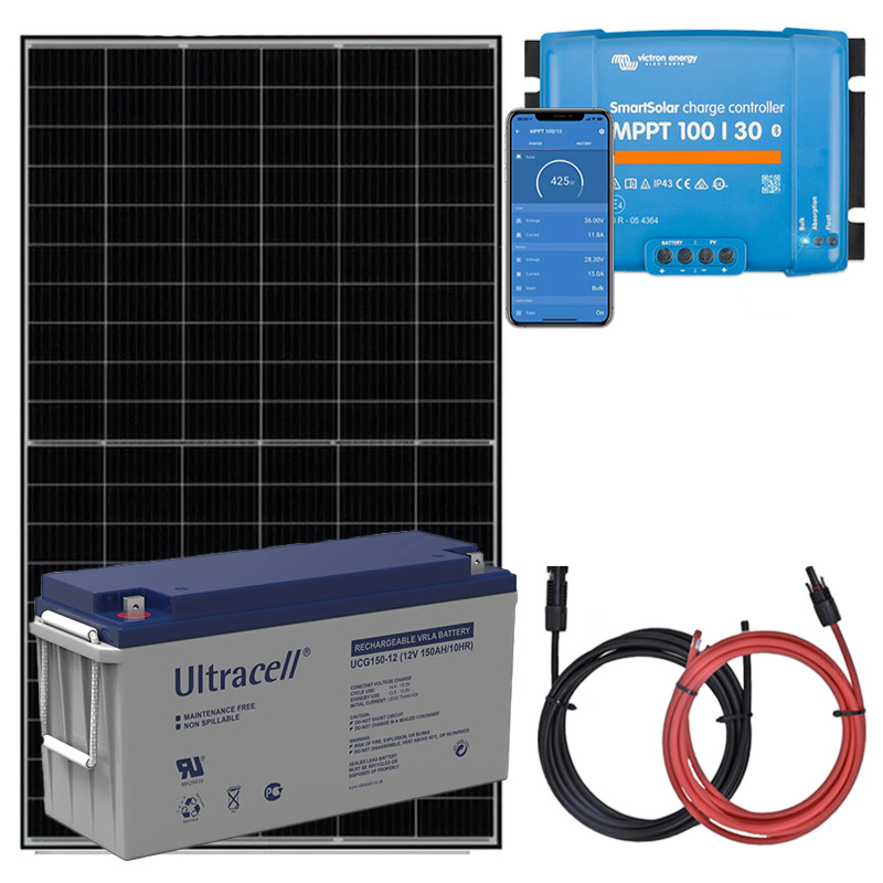 Zestaw solarny 435W z akumulatorem żelowym 150Ah i regulatorem MPPT. Umożliwia niezależne zasilanie domków letniskowych, kamperów i systemów off-grid. Wydajny, profesjonalny komplet o dużej mocy i długiej żywotności.