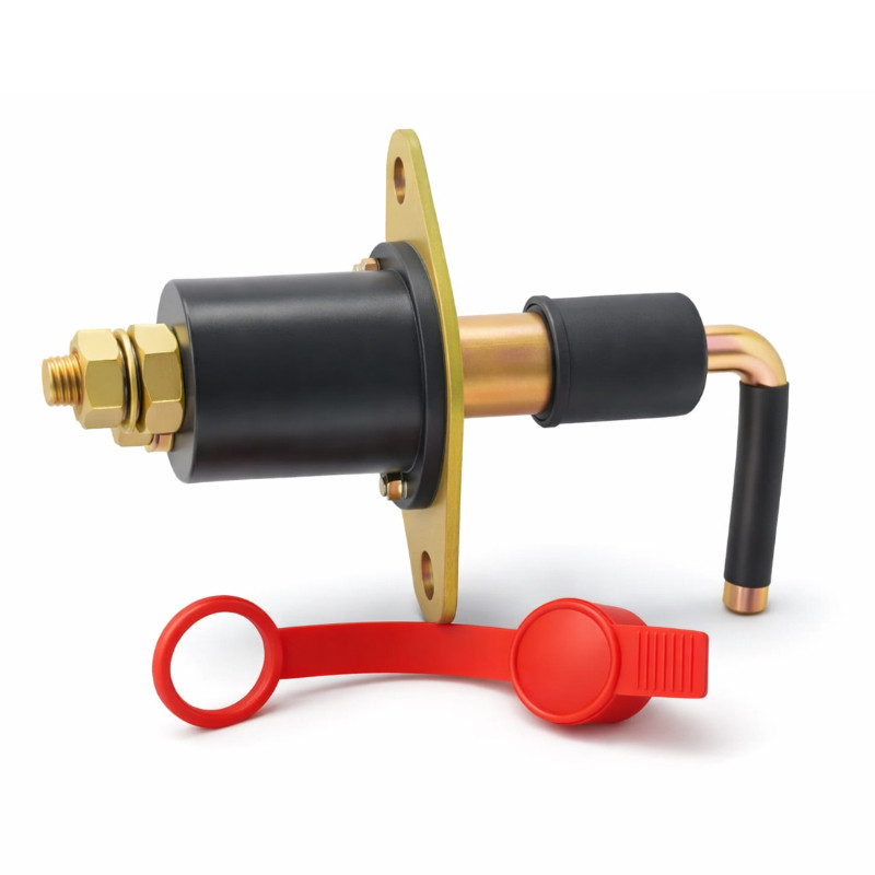 Wytrzymały rozłącznik główny do instalacji 12/24 V DC, przystosowany do pracy ciągłej z prądem do 250 A. Zapewnia szybkie i bezpieczne odcięcie zasilania w pojazdach, łodziach, kamperach oraz systemach off-grid.